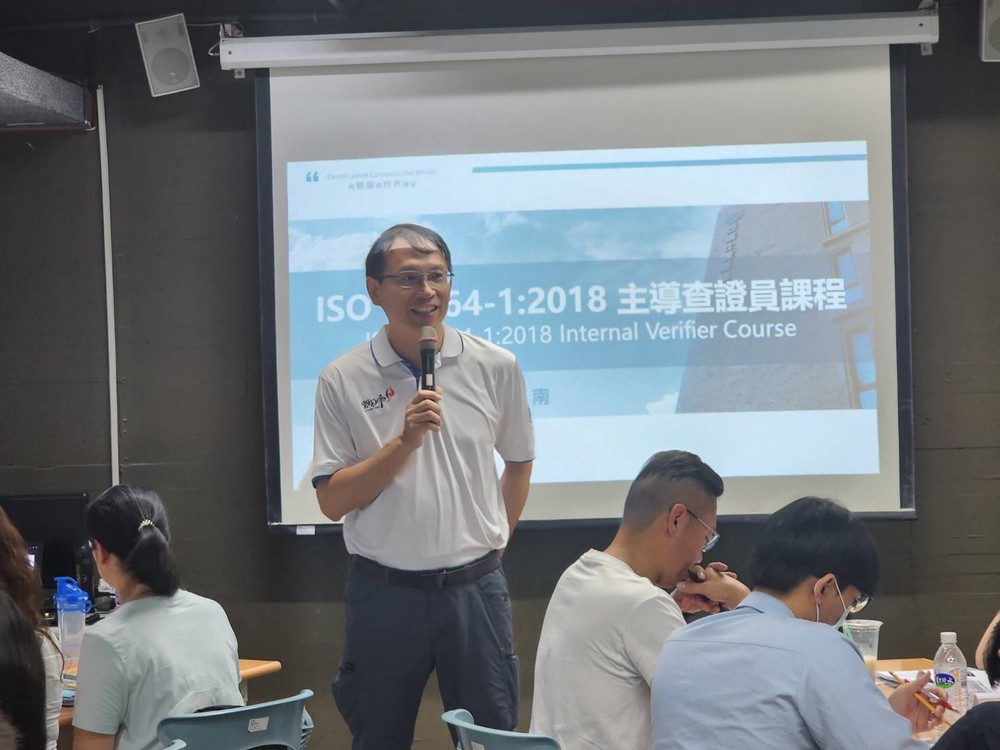 亞瑞仕國際驗證專業講師,為學員詳細解說ISO14064-12018標準及溫室氣體查證認證流程,協助學員了解查證資格與國內外認證制度