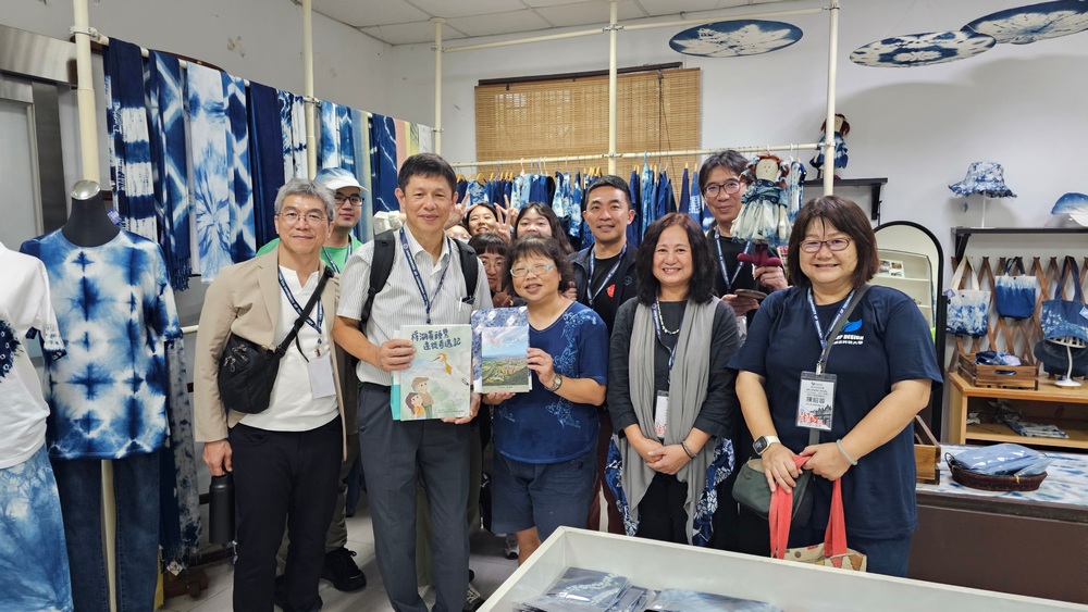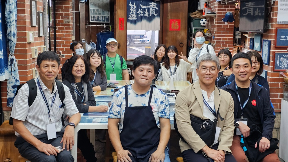 最後陳昭蓉執行長與王淑宜助理教授帶領本校一行人前往三峽進行文化走讀活動,首站前往三峽歷史文物館參觀由王淑宜老師協助策劃之「三峽藍染節特展」,特別是輔大織品系學生參與的「小精靈和她的糖果森林」,接著參訪三峽染工坊,聽取明志科大與輔大如何結合三峽地方團體,振興藍染傳統工藝,從原先沒落的產業,如今成為三峽最具特色的文化亮點。陳昭蓉與王淑宜兩位老師乃為三峽本地人,漫步三角涌老街娓娓道來曾經繁榮的商業城鎮;觀看老屋牆樓立面上的「染坊」字號,侃侃而談昔日過往興盛的染布產業。經由這二位老師的散策導覽,讓本校團隊了解三峽在地社區居民及團體進行社區營造,復振百年藍染傳統技藝。