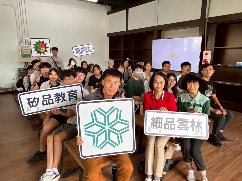 本校學生手持「矽品教育」、「細品雲林」標語與 LOGO 進行合影,展現參與環境教育行動的熱情與團隊精神。