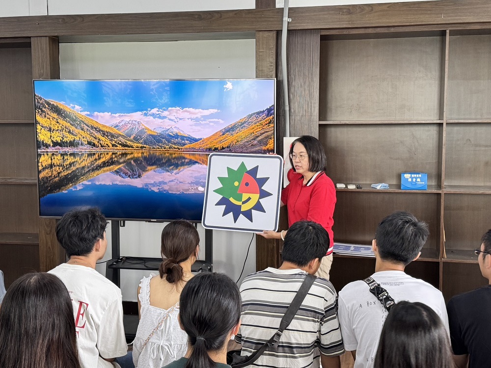 本校郭昭吟教授向學生介紹日月光環保永續基金會理念,強調企業在推動環境教育及永續發展的重要角色。