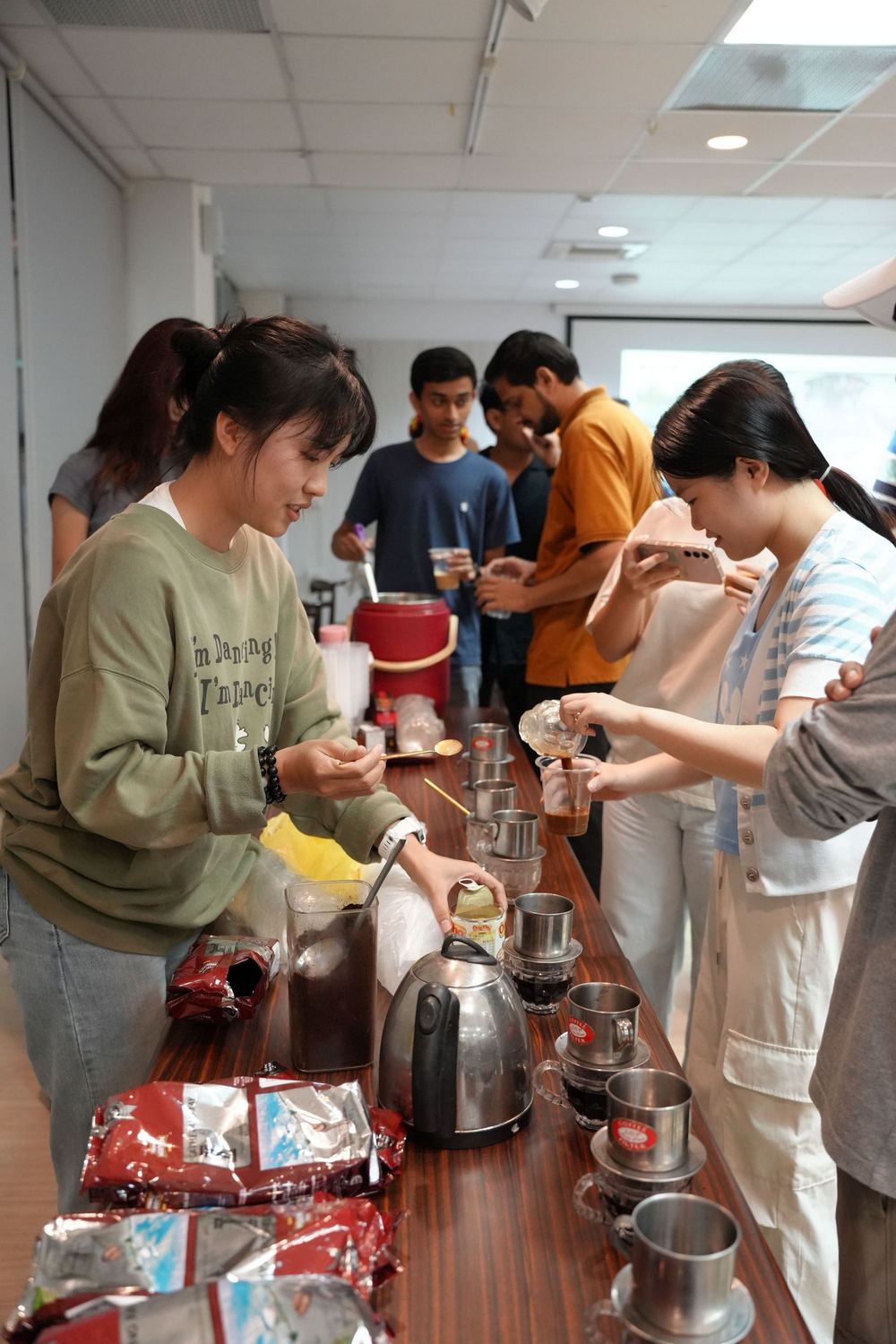 學生們親手沖煮並開心享用一杯屬於自己的越南咖啡