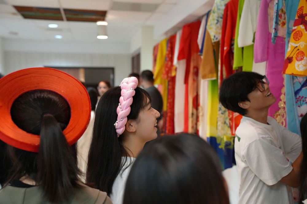 學生們一同試穿越南傳統服飾 áo dài 彼此交流並留下難忘的合影