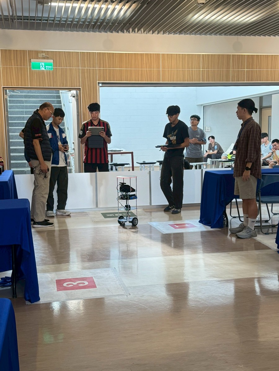 賽事於10月26日假本校產學研大樓B1舉行,吸引全台大專院校及香港隊伍參賽。競賽模擬真實餐飲服務情境,參賽隊伍須設計AGV移動式送餐機器人,完成「帶位」、「固定送餐」、「加點配送」三項任務,並即時因應障礙物、環境變化與定位誤差等挑戰,充分體現AI機器人在智慧服務場域的整合應用。