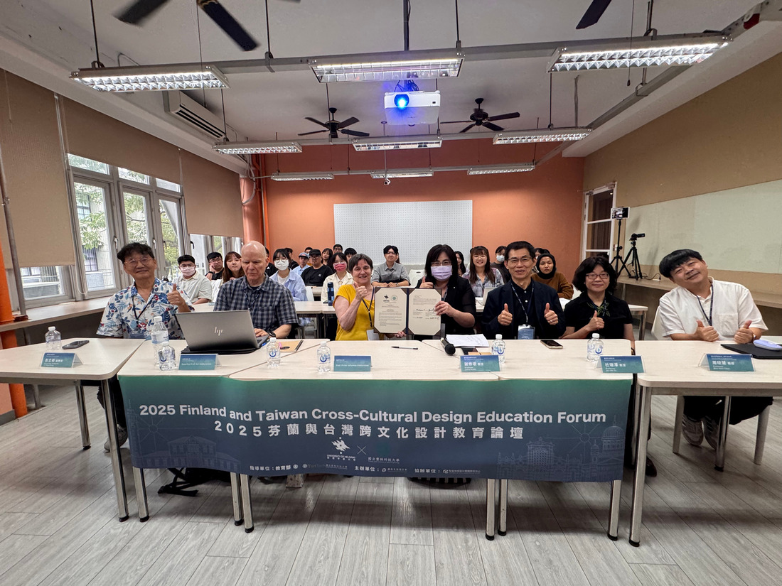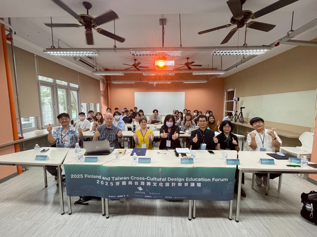 本校創意生活設計系於2025年10月21日舉辦「2025台芬跨文化設計教育講座與論壇(2025 Finland and Taiwan Cross-Cultural Design Education Forum)」,特別邀請來自芬蘭赫爾辛基大學(University of Helsinki)設計教育領域權威──Pirita Seitamaa-Hakkarainen教授與Kai Hakkarainen榮譽教授蒞校演講與交流。活動由本系主任謝修璟教授主持,並邀請設計學院副院長周玟慧教授、創意生活設計系杜瑞澤教授、彭立勛副教授與蔡旺晉副教授共同參與論壇對談。