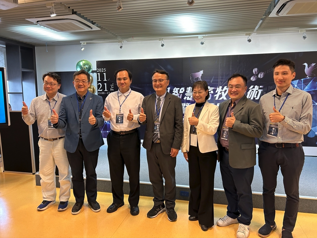 「AI智慧畜牧技術媒合暨成果展示會」21日在本校登場,集結臺科大、屏科大與本校等多所大專校院共同展示技術成果。活動吸引畜牧、水產、農業、法人組織與學研單位熱烈參與,包括數位發展部數位產業署何勝泉科長、雲林縣副縣長謝淑亞、台灣雜糧發展基金會許根尉執行長、本校校友會蘇振毅理事長等多位產官學研界重量級代表到場支持,現場洽談氣氛熱烈,展現台灣智慧農畜業邁向AI智慧化的強大動能。