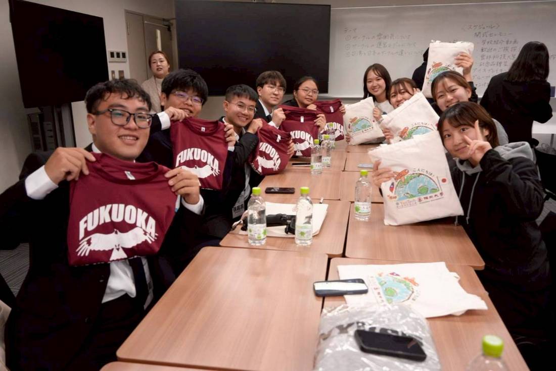 本校與福岡大雙方學生互相贈送交流紀念品 (20251118)