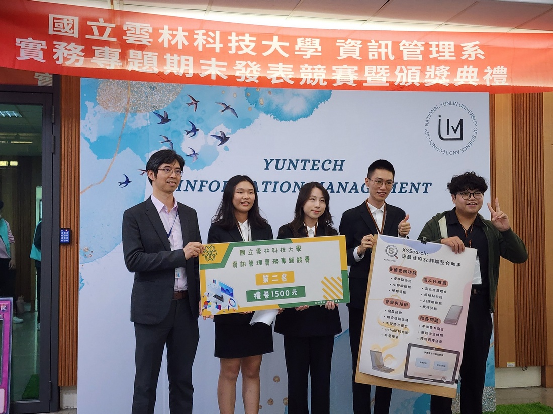 「本校資管系專題評比展示」A場第二名合影