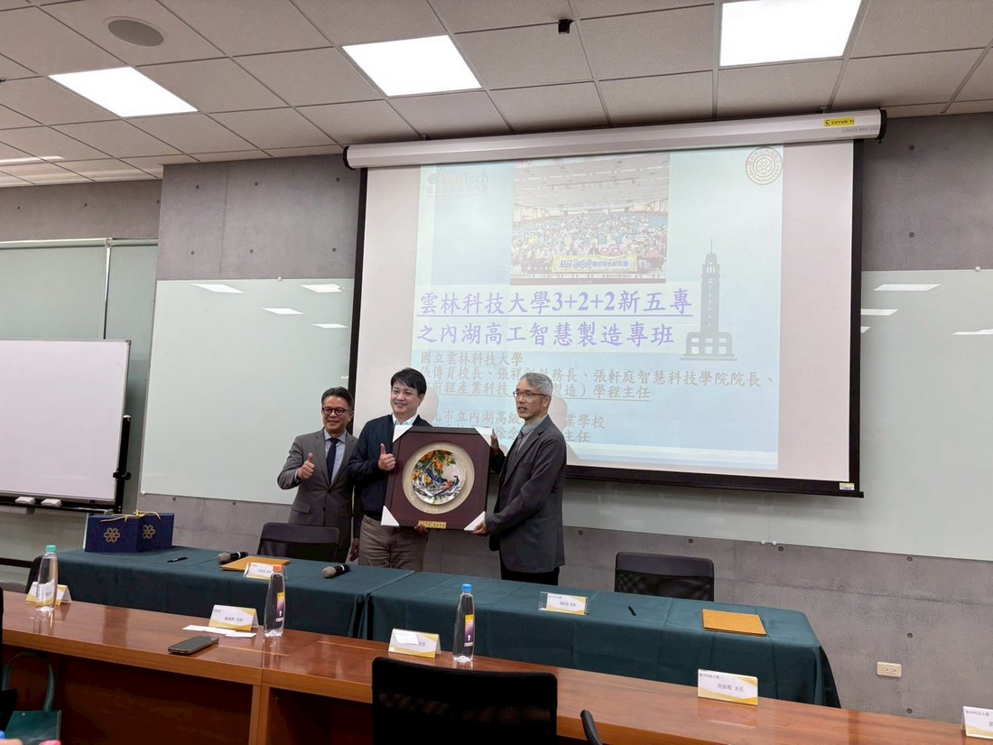 本校智慧科技學院今(12/2)日上午與台北市立內湖高工正式簽署合作備忘錄(MOU)。台北市教育局技職科官員、內湖高工校長行政團隊及家長會一行共32人特地南下出席,展現雙方推動智慧製造與技職教育升級之高度重視。