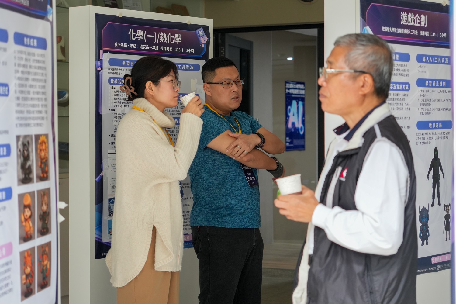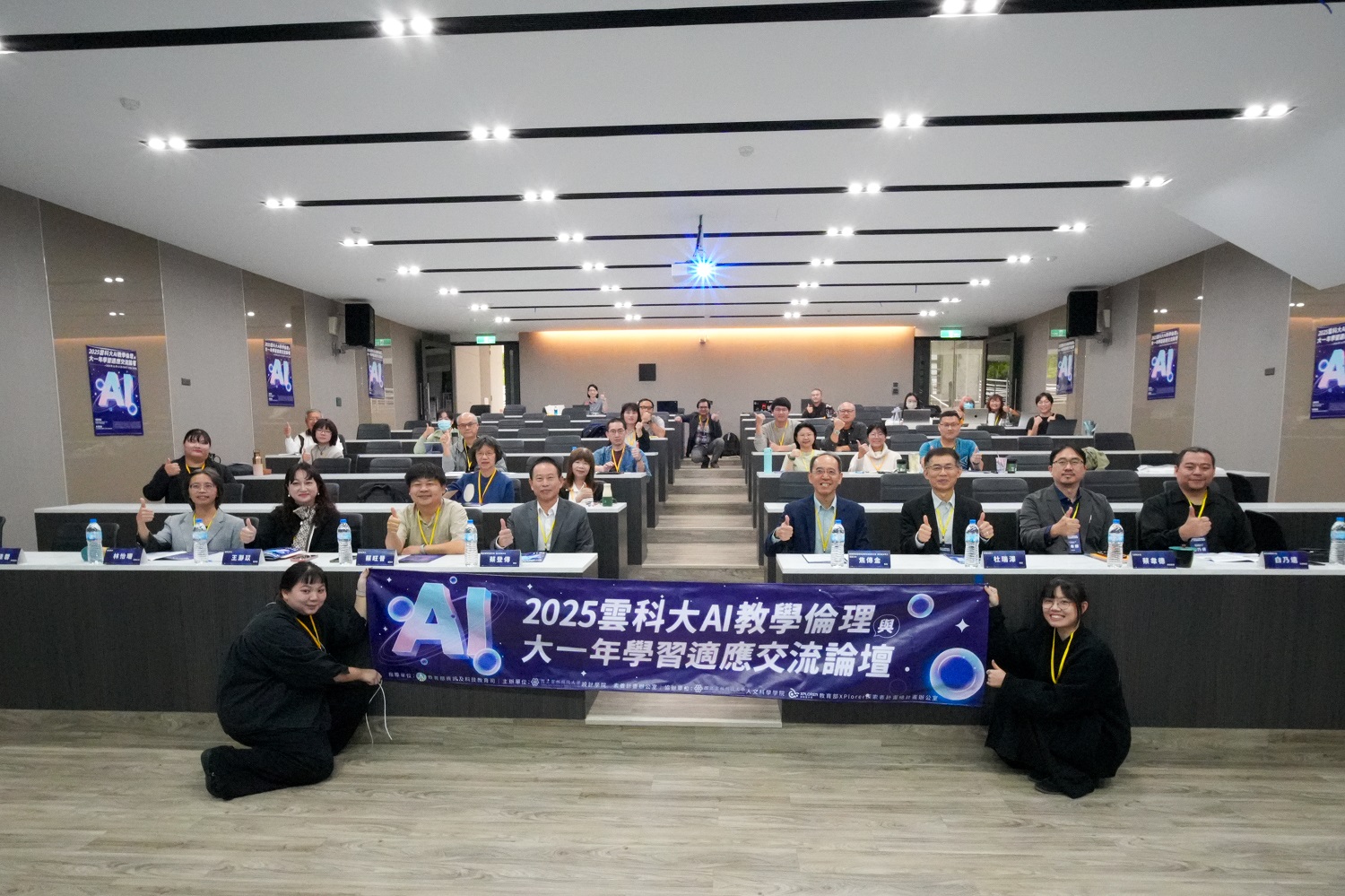為回應專班學員的學習回饋,並進一步反思AI科技浪潮對高等教育所帶來的影響,在本校設計學院、人文與科學學院的跨院合作下,設計學院於114年12月13日,假校內設計一館多功能會議廳,舉辦「2025 本校 AI 教學倫理及大一年學習適應交流論壇」。論壇以「AI教學倫理」與「大一年學習適應」為雙主軸,廣邀關心相關議題之大專院校、高中職教師與研究生齊聚交流,共同探討 AI 時代下教學實務與學生學習支持的新課題。教育部XPlorer探索者計畫辦公室總計畫主持人焦傳金教授,以及本校設計學院蔡登傳院長亦親臨現場指導與勉勵。論壇期間,會場外同步展出本校設計學院AI師資培育專班成果海報,呈現教師在課程實踐與教學創新上的多元成果,供與會者參觀交流。