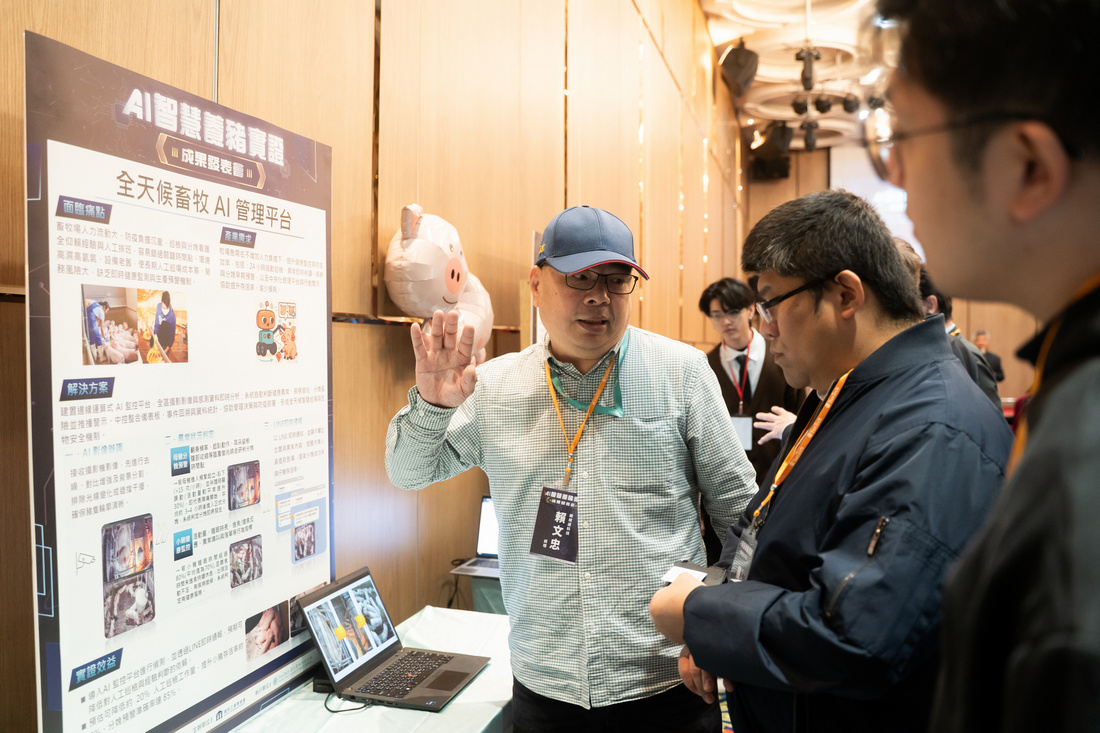 本次活動以「技術實證、場域落地、產業擴散」為核心,除發表「全天候畜牧AI管理平台」於場域實證成果,亦邀請學研團隊分享AI技術於養豬產業的應用經驗。屏科大吳庭育老師與宜蘭大學李秀評老師團隊,展示AI影像技術顛覆傳統「人看豬估價」模式,讓豬隻自然行走即可完成無接觸、無碰觸屠體的瘦肉率預測;屏科大龔旭陽與潘建良老師團隊則從場域管理出發,建置智慧豬隻飼養資訊平台,整合環境監測與飼養管理流程,補足AI技術落地後的營運與決策需求,展現智慧養豬從單點技術到整體應用的產業成熟度。