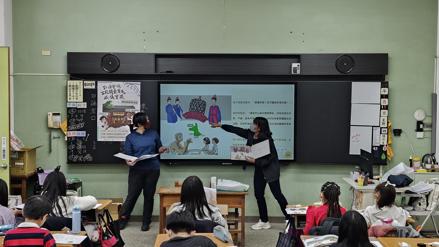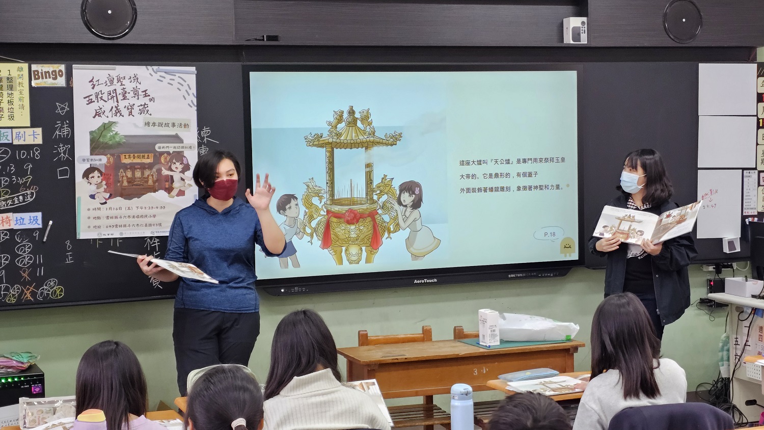 該活動由本校文化資產維護系王瀞苡副教授率領陳映蓉與何宣儀2位研究生、智地中心卓佳賢博士後研究員等人前往該校。陳映蓉與何宣儀研究生展現絕佳默契,以生動活潑的方式解說繪本內容,引領五年級學生彷彿身歷其境般踏上百年香路;活動中穿插的有獎徵答環節,學生們興致盎然,踴躍互動,對文化資產和在地文化展現出高度興趣與吸收力。